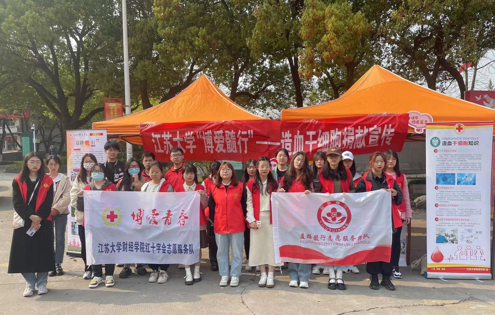 活动开始前,志愿者们在三岔口整理帐篷、桌椅,贴好横幅,完成现场布置工作,做好活动前期准备工作。活动分为流动宣传和固定讲解两部分。在分发完宣传物资后,志愿者们以三到五人为一组的形式分散前往附近向来往的师生宣传造血干细胞。同时,志愿者们也在三岔口做好宣传工作,为过往感兴趣的同学详细讲解造血干细胞知识。志愿者们积极向大家介绍造血干细胞,热心解答关于造血干细胞捐献的疑惑,解决大家捐献的顾虑。