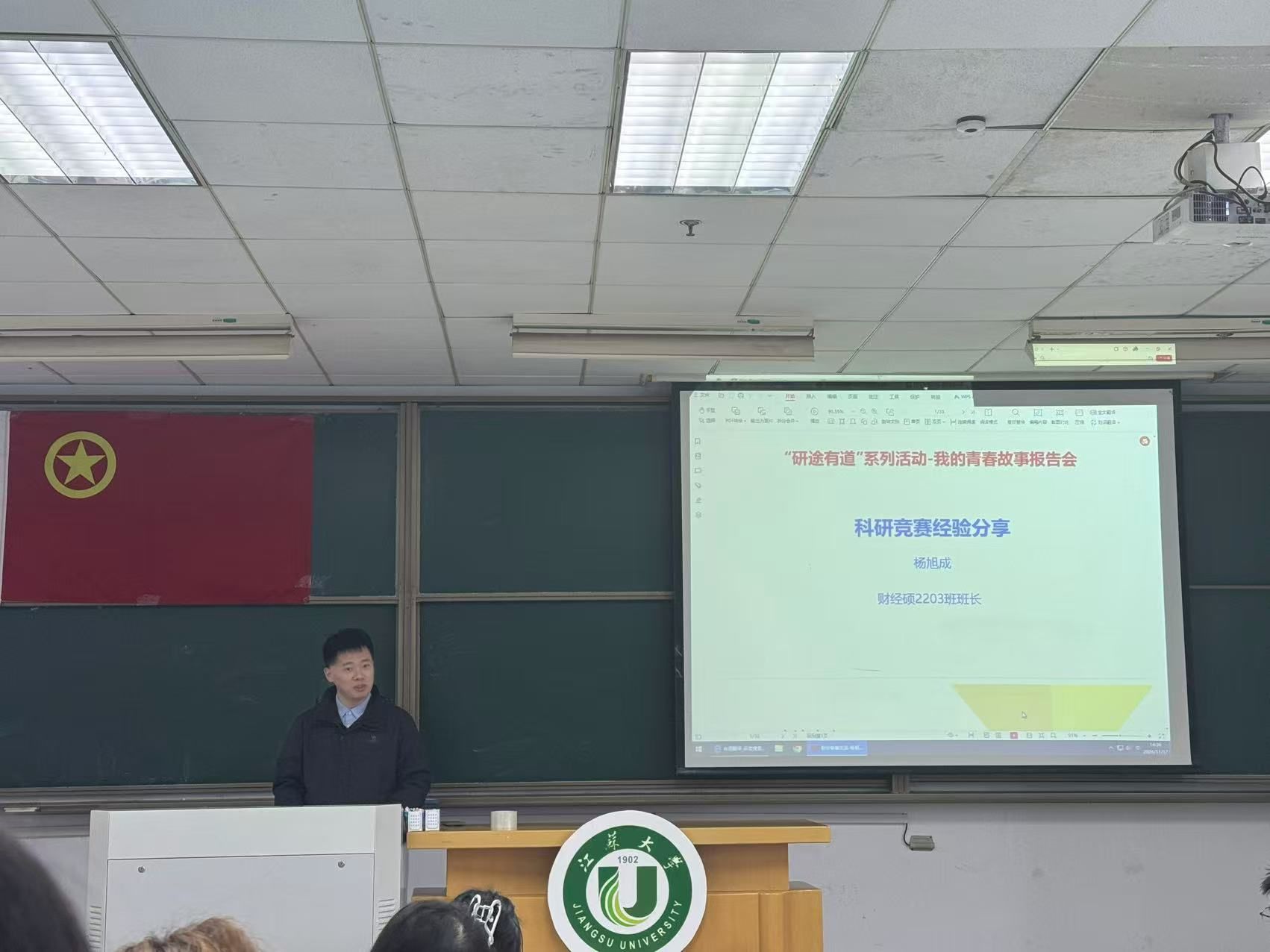 为引导团员青年强化科研意识、提高科研能力、培养系统的科研思维,11月17日,3044永利在三江楼401教室组织开展“研途励行,科创未来”主题活动,财经硕2401团支部和3044永利研究生会功能型团支部全体成员参加活动。活动邀请江苏大学应用经济学硕士研究生胡文杰同学与会计学硕士研究生杨旭成同学分享科研与竞赛经验。