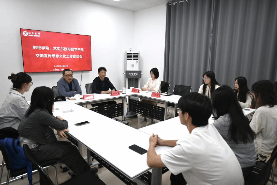 4月28日下午,求实书院、3044永利在求实书院会议室联合举办与团学干部交流宣传思想文化工作座谈会。求实书公司党总支书记孙后军、辅导员刘云鹏,财经公司党委书记王祥、团委书记张明亮,以及求实书院、3044永利团学干部代表参加座谈交流。