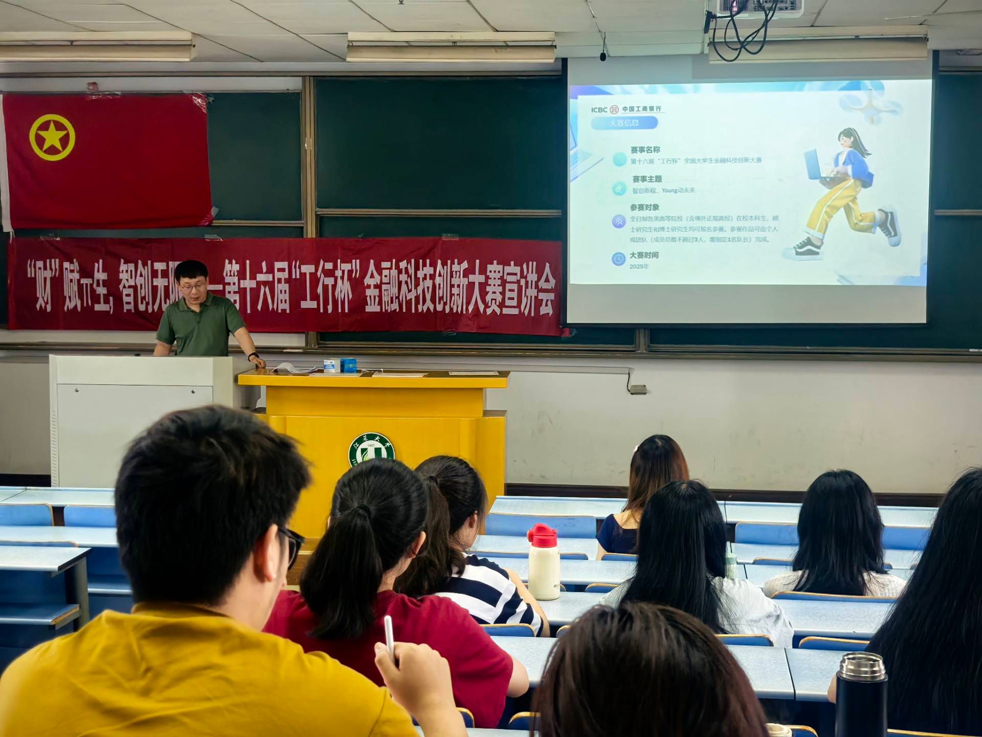 宣讲会上,刘启兵系统介绍了大赛章程、时间节点、报名条件及评审标准等内容。在互动交流环节,刘启兵结合往届优秀作品进行讲解,深入浅出地解析参赛要点,帮助同学们掌握参赛要领,鼓励大家将理论知识转化为实践成果,勇攀金融科技高峰。