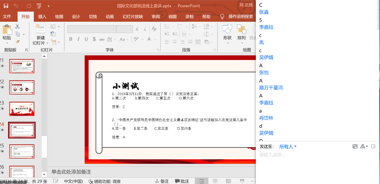 “宪法法律的权威源自人民的内心拥护和真诚信仰,加强宪法学习宣传教育是实施宪法的重要基础”,为深入学习贯彻习近平总书记重要讲话精神,10月16日,3044永利举办线上宪法知识讲座。本次活动由刘正扬同学主讲,大一新生积极参与。