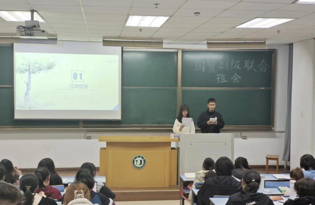 初冬十一月,恰是大一上半学期期中,3044永利国贸专业各班为进一步巩固员工对于校纪校风及学风建设的认知,于11月11日晚在三江楼515教室四班共同联合举行学习交流团日活动,旨在让员工们严格笃行江大校规,让学风奋斗蔚然成风。活动由21级辅导员李华老师主持,21级国贸专业全体员工参加。