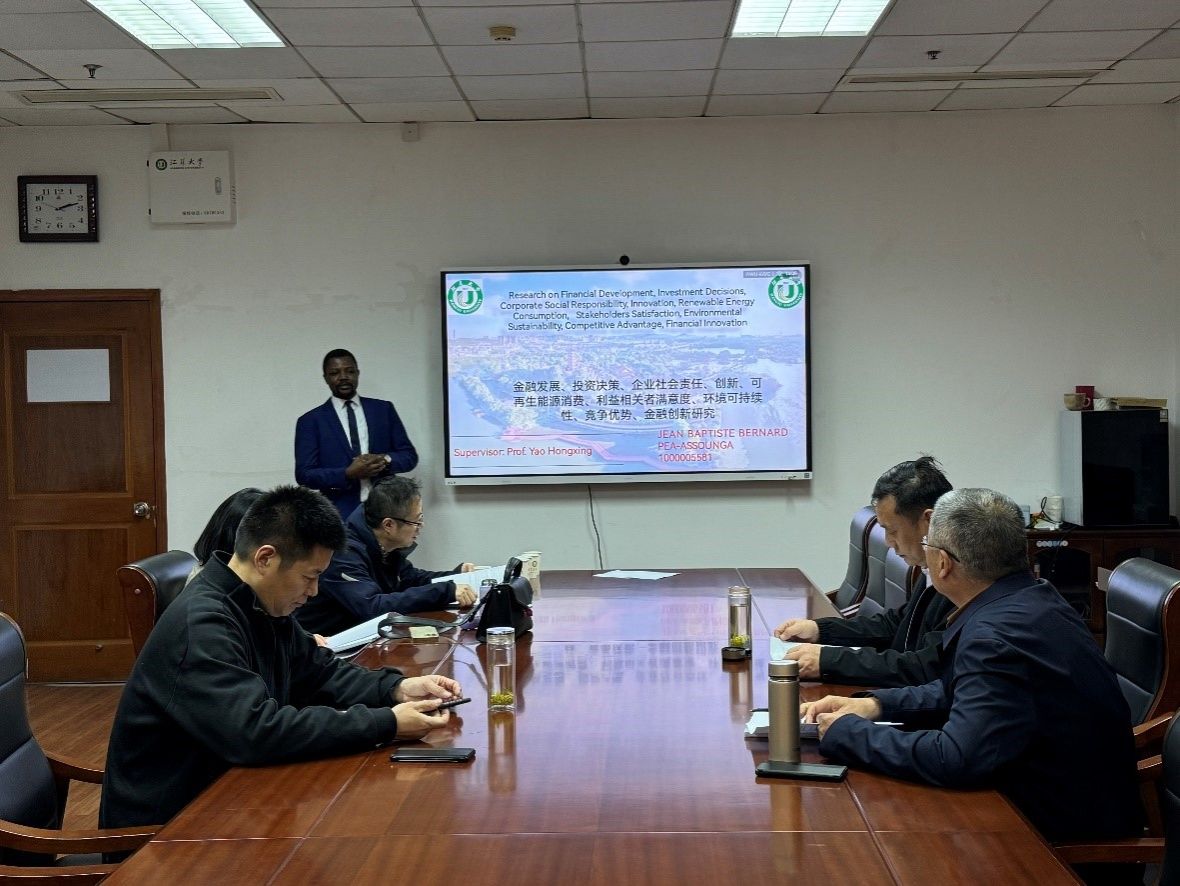 On November 23, the School of Finance and Economics convened a defense meeting for the Foreign Postdoctoral Research Station, with Jean Bpatiste Bernard Pea-Assounga and Abdul-Rahaman Abdul-Rashid in attendance.