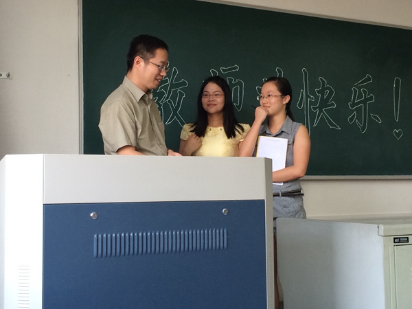 By presenting teachers with flowers, cards and carrying some theme class meetings, the Student Union and Youth League Branches of the SFE expressed their gratitude to the teachers. Among all these activities, the Youth League Branch of Class financial management 1301 did a good sample. Teacher Li Kaodui was invited to make a speech in which he stressed that life is a continuous learning process and we should obtain and constantly improve the ability of learning by experience accumulation.