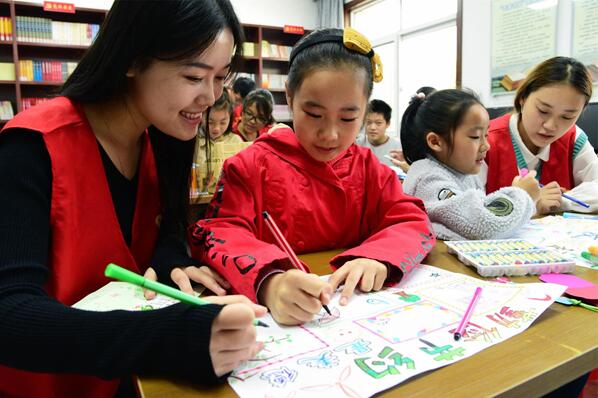 about thrift with the children.The atmosphere was very harmonious.Then volunteers broadcast a video about thrift story.The volunteers hoped the people in the video can set a good example to the children.And they hoped the children can put the slogan “advocating thrift,opposing waste” into action.The children also promise to do it.