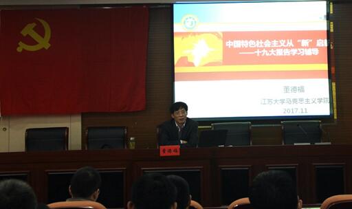 On the afternoon of November 15, the School of Finance and Economics invited Prof. Dong Defu, Dean of Marxism Institute, to give a lecture on "Learning and Carrying out the 19th CPC National Congress Spirit" for teachers and students in the lecture hall at 1301 Sanjiang Building.The report was chaired by Chen Yongqing, party secretary of our school.