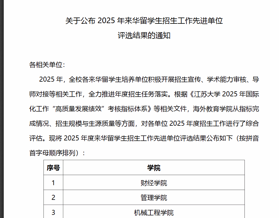 Jiangsu University recently recognized the School of Finance and Economics as the "International Student Recruitment Advanced Unit" for the fifth consecutive year, highlighting the School's sustained excellence and leading role in the globalization of education.