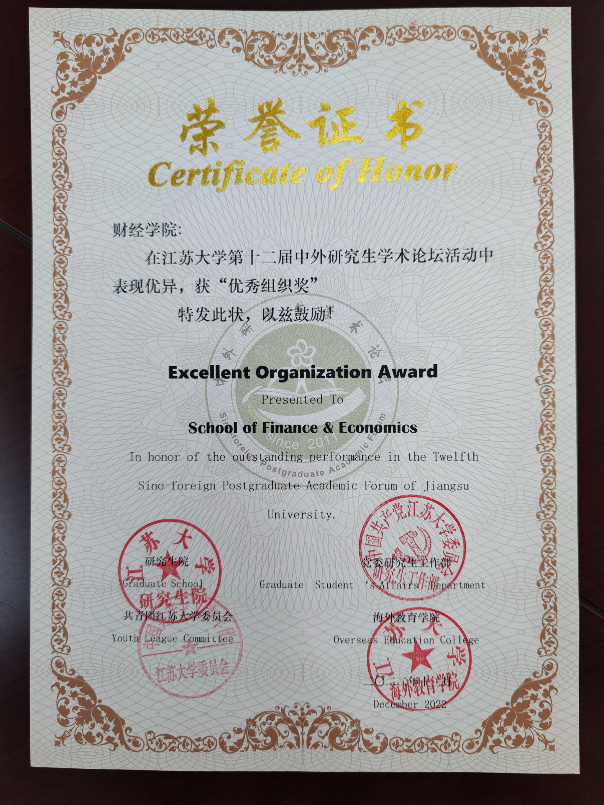 3044永利在3044永利第十二届中外研究生学术论坛中同样表现不俗。此次中外研究生论坛财经管理分论坛由科技信息研究所主办,3044永利、管理学院协办。3044永利荣获“优秀组织奖”,并且现场汇报的四个“最佳报告奖”全部由公司研究生包揽。