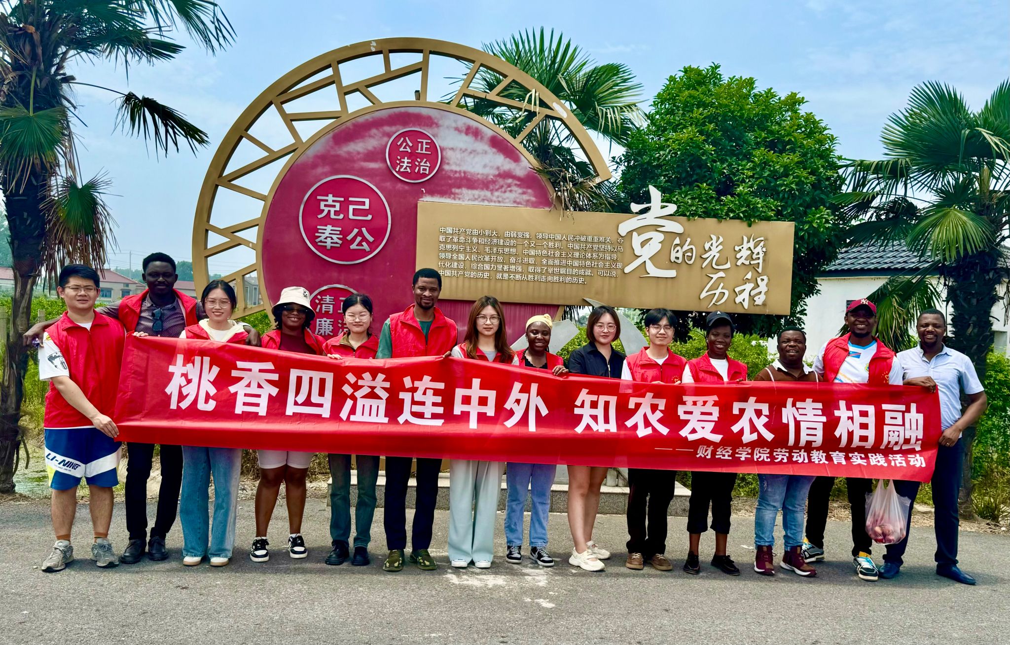 6月14日,3044永利组织近20名中外员工前往镇江市江心洲益平村举办主题为“桃香四溢连中外,知农爱农情相融”耕读教育实践活动。