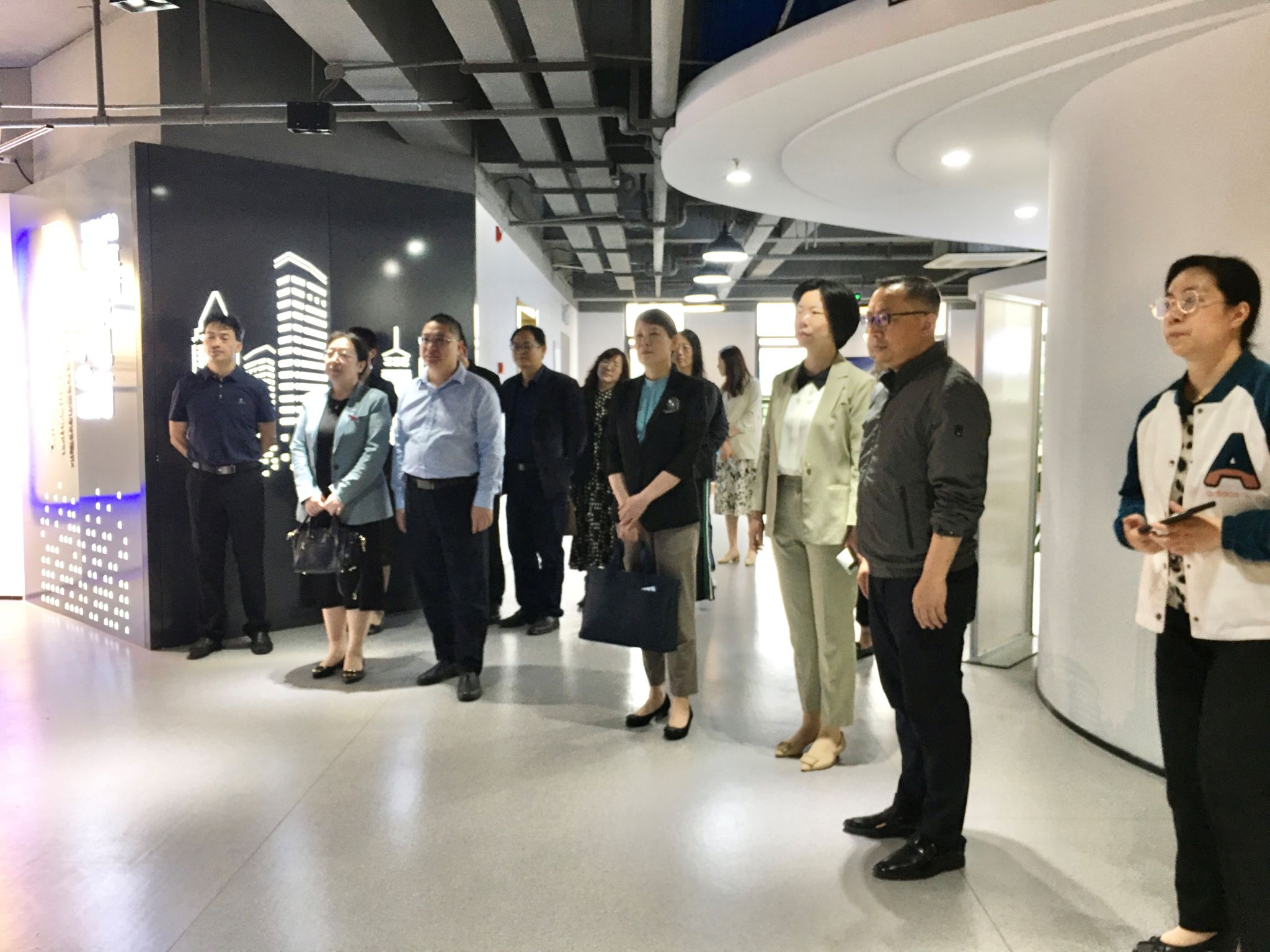 围绕“如何进一步以实践育人推进深化三全育人”调研专题,在局领导、区领导和产业园工作人员的陪同下,薛宏丽、王祥一行参观了位于产业园八号楼六楼的“镇江跨境电商品牌赋能中心”,并翻阅学习了产业园提供的项目入驻、孵化等各类宣传、培训资料。浙江国贸数字镇江项目负责人为大家介绍了江苏省各城市跨境电商的规模状况与数据排名情况,现场演示了镇江市跨境电商实时运行情况,并详细介绍了产业园的建设目标、建设任务以及建立6大体系、特色出口商品分布等情况,同时展示介绍了相关实践实训、入驻孵化空间和“跨境电商直播”“一亿美金加速器”等集成化的一揽子创业孵化功能。薛宏丽、王祥一行对市商务局、区政府真诚关心、积极支持有志青年特别是优秀老员工创新创业实践表示衷心感谢,并就加强政策宣介、开展实践教学、推荐优质项目、持续拓岗就业开展了交流,交换了意见。