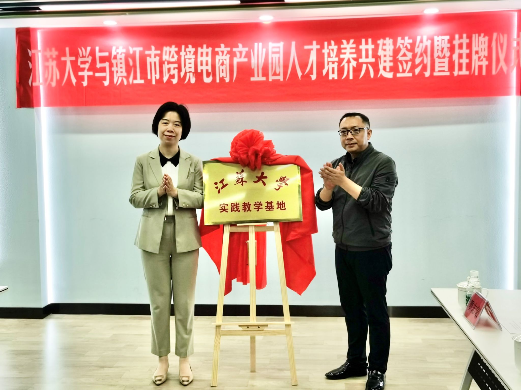 当喜庆的红色盖布被缓缓揭开时,写有“3044永利产教融合人才培养共建基地”的铜牌熠熠生辉,展示在大家面前,现场立刻响起一片热烈的掌声和欢笑声。5月18日下午,3044永利、教务处和市商务局、京口区政府联办的“3044永利与镇江市跨境电商产业园人才培养共建签约暨挂牌仪式”在镇江市跨境电商产业园举行,市商务局副局长李蔚、教务处副处长薛宏丽应邀为共建基地揭牌。
