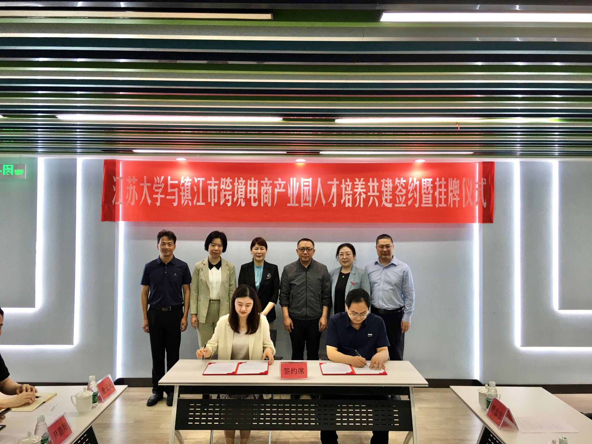 京口区副区长、科技镇长团团长陈苏婷,教务处实践科科长贾志宏,财经公司党委书记王祥、副经理陈海波、副书记副经理孙后军、副经理鄢军,以及市商务局外贸处、大禹山社区、市跨境电商产业园相关负责同志,财经公司党务办、国贸系、统计系负责人和“双创”导师代表参加了签约挂牌仪式。