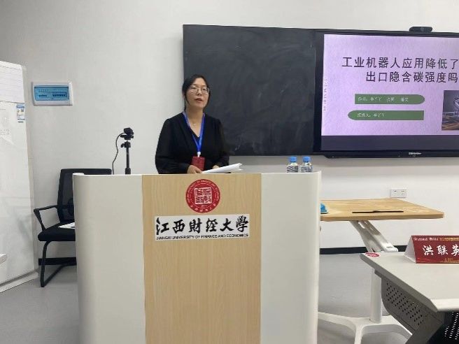 李丫丫和杨秋菊两位教师的论文经过会议主办方的严格遴选,受邀进行会议专题报告。李丫丫老师出席专题论坛五并汇报了《工业机器人应用降低了制造业出口隐含碳强度吗?》的文章,系统阐述了工业机器人应用主要通过低碳技术效应和生产率效应影响制造业出口隐含碳强度的核心观点。杨秋菊老师出席专题论坛九并就《跨境资本流动突然中断、银行挤兑与外汇储备救援》作了主题汇报,深入分析了突然中断作为一个外生冲击对国内金融市场和实体经济的影响,以及对金融机构注入流动性的救援效果。