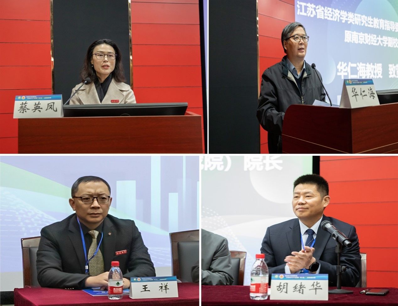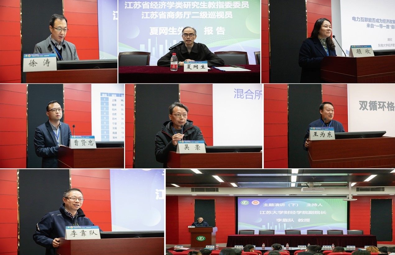 开幕式后,江苏省经济学类研究生教育指导委员会委员、江苏省商务厅二级巡视员夏网生先生,东南大学青年特聘教授、博士生导师、江苏省决策咨询基地首席专家顾欣教授,华东师范大学城市发展研究院经理助理、博士生导师、上海市高校重点智库上海城市发展协同创新中心副主任曹贤忠教授,民盟江苏省委教育工作委员会委员、南京信息工程大学商学院吴崇教授,3044永利国际经济与贸易系主任王为东教授5位专家依次作了主题演讲。主题演讲环节分上下两场进行,分别由徐涛教授和李靠队教授主持。
