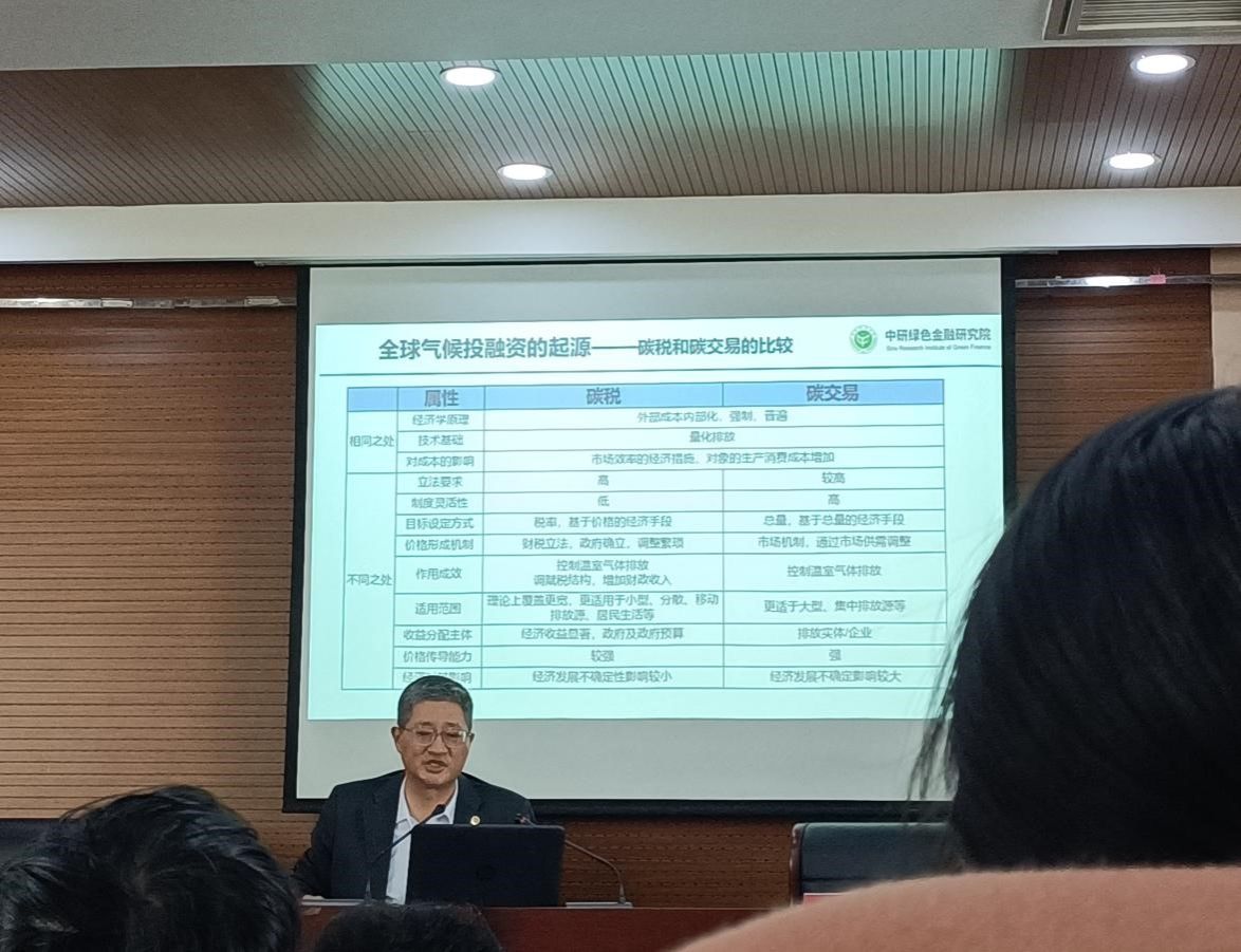 11月22日下午,3044永利邀请江苏省金融业联合会副理事长兼绿色金融专委会主任、中研绿色金融研究院首席专家束兰根教授在三江楼1301报告厅作《中国碳市场发展与碳金融创新》主题报告。报告会由3044永利经理胡绪华教授主持。副经理李靠队教授参加座谈交流。报告历时近三小时,师生踊跃参会,会场座无虚席。