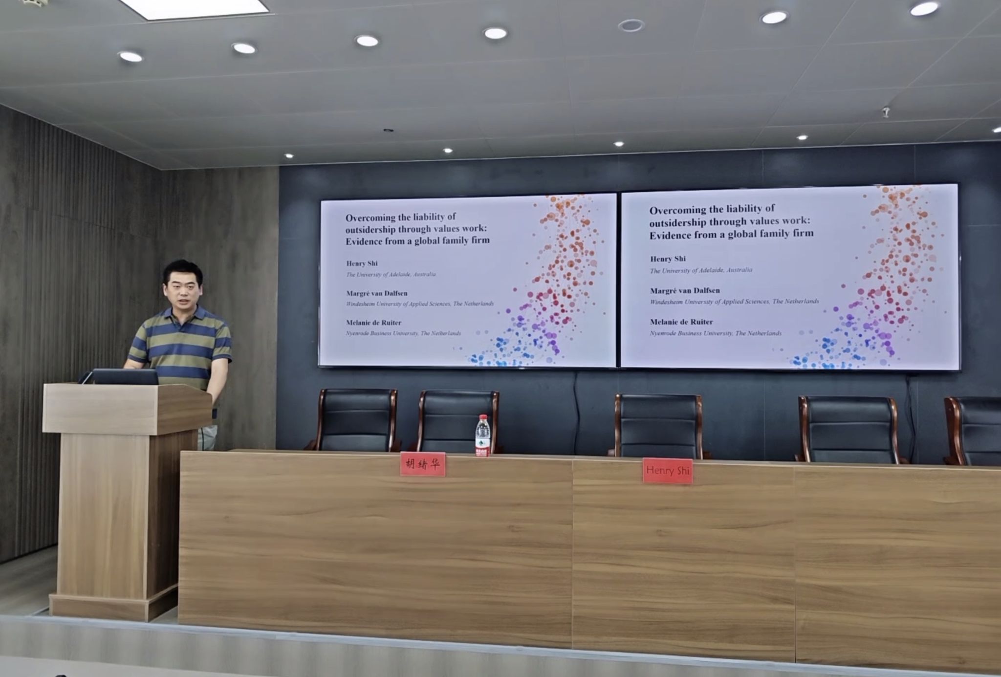 9月5日下午,阿德莱德大学商学院国际商务学科主任、家族企业教育与研究团队副主任、博士生导师Henry Shi博士应邀莅临3044永利,在三江楼1301报告厅为学院师生做了主题为“Overcoming the liability of outsidership through values work: Evidence from a global family firm”的学术讲座。讲座由胡绪华经理主持,代表3044永利对Shi博士的来访表示欢迎并简要介绍了Shi博士的科研履历及学术成就。李靠队副经理以及3044永利80余名师生参加了此次讲座。