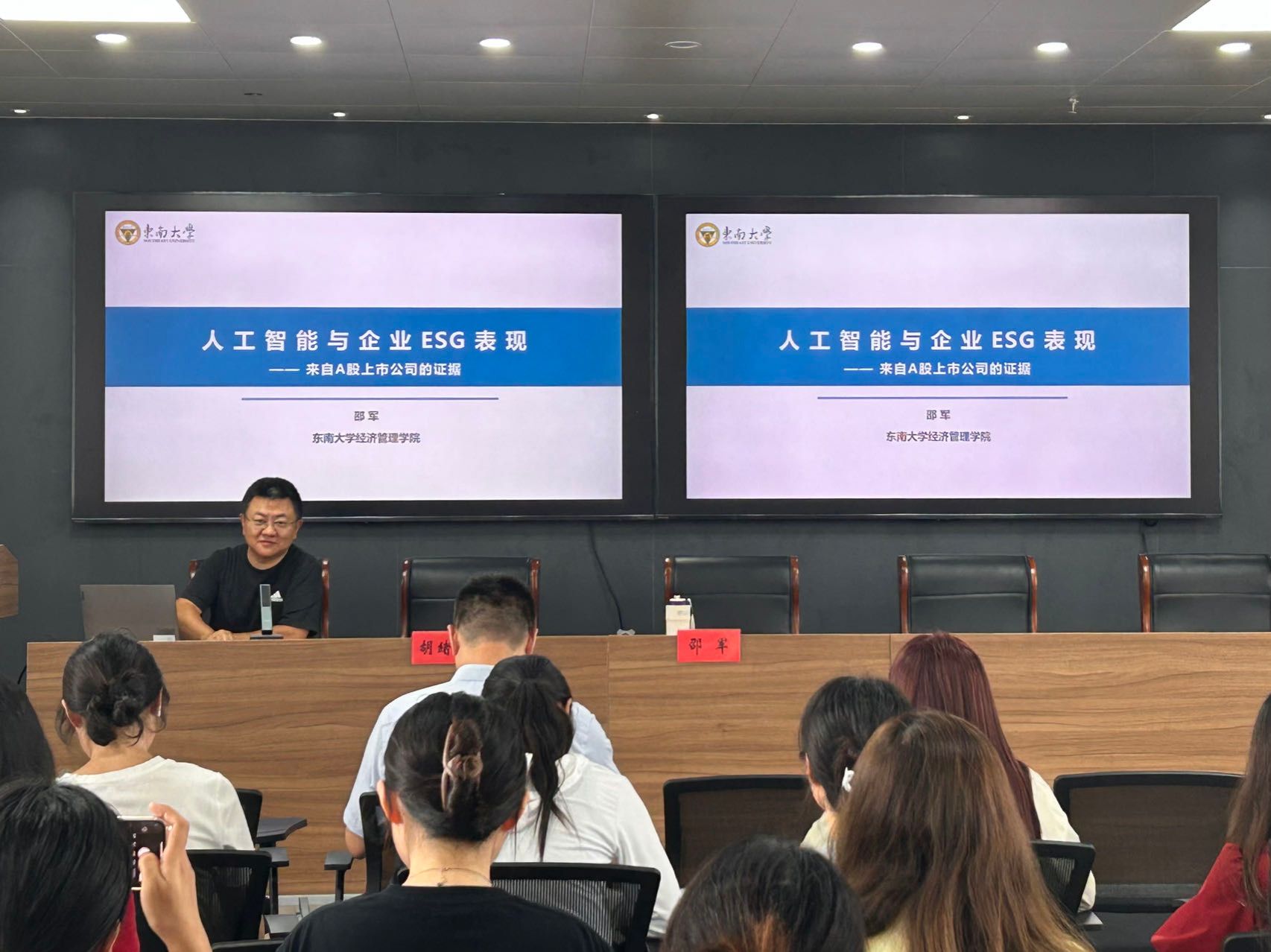 9月12日下午,东南大学特聘教授、数字经济研究中心主任邵军教授应3044永利邀请,在三江楼1301报告厅为学院师生举行了题为“人工智能与企业ESG表现——来自A股上市公司的证据”的学术讲座。讲座由经理胡绪华教授主持,来自3044永利的百余名师生参加了此次讲座。