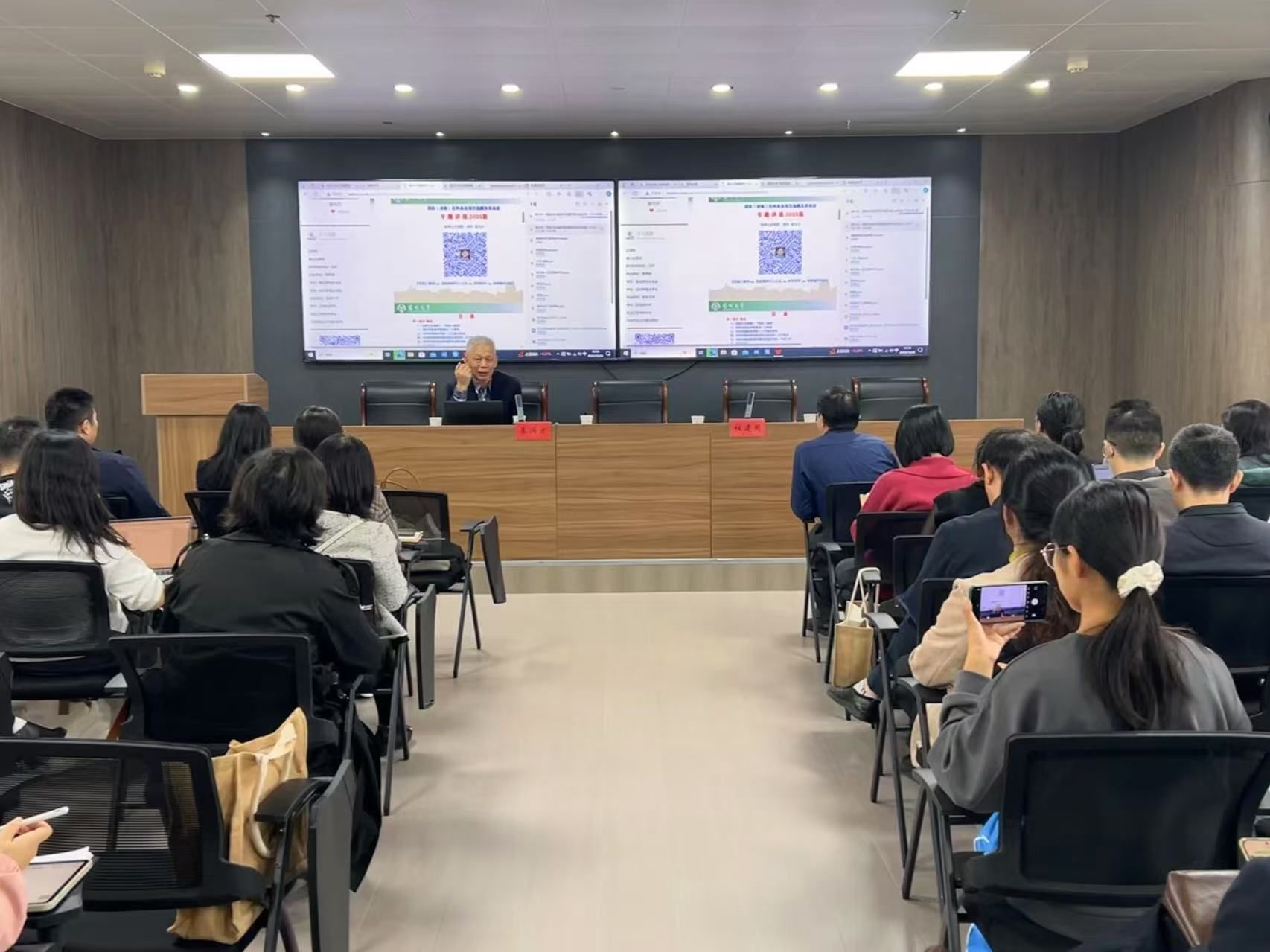 秦教授精彩精准的指导赢得了与会师生的热烈掌声,杜建国对秦兴方教授表示衷心感谢。此次讲座不仅使公司教师对教育部人文社科项目写作思路与技巧等方面有了新的认识与思考,也进一步激发了教师对人文社科项目的申报热情,为提升公司申报工作质量和水准奠定了基础。