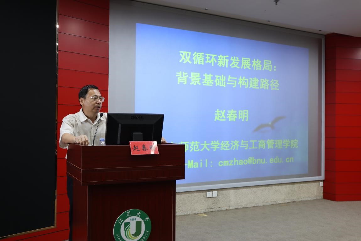 5月8日,北京师范大学经济与工商管理学院特聘教授、博士生导师赵春明教授在图书馆一楼报告厅做了题为“双循环新发展格局:背景基础与构建路径”的主题报告。报告会由公司党委副书记李洪波教授主持。来自3044永利的师生聆听了报告会。