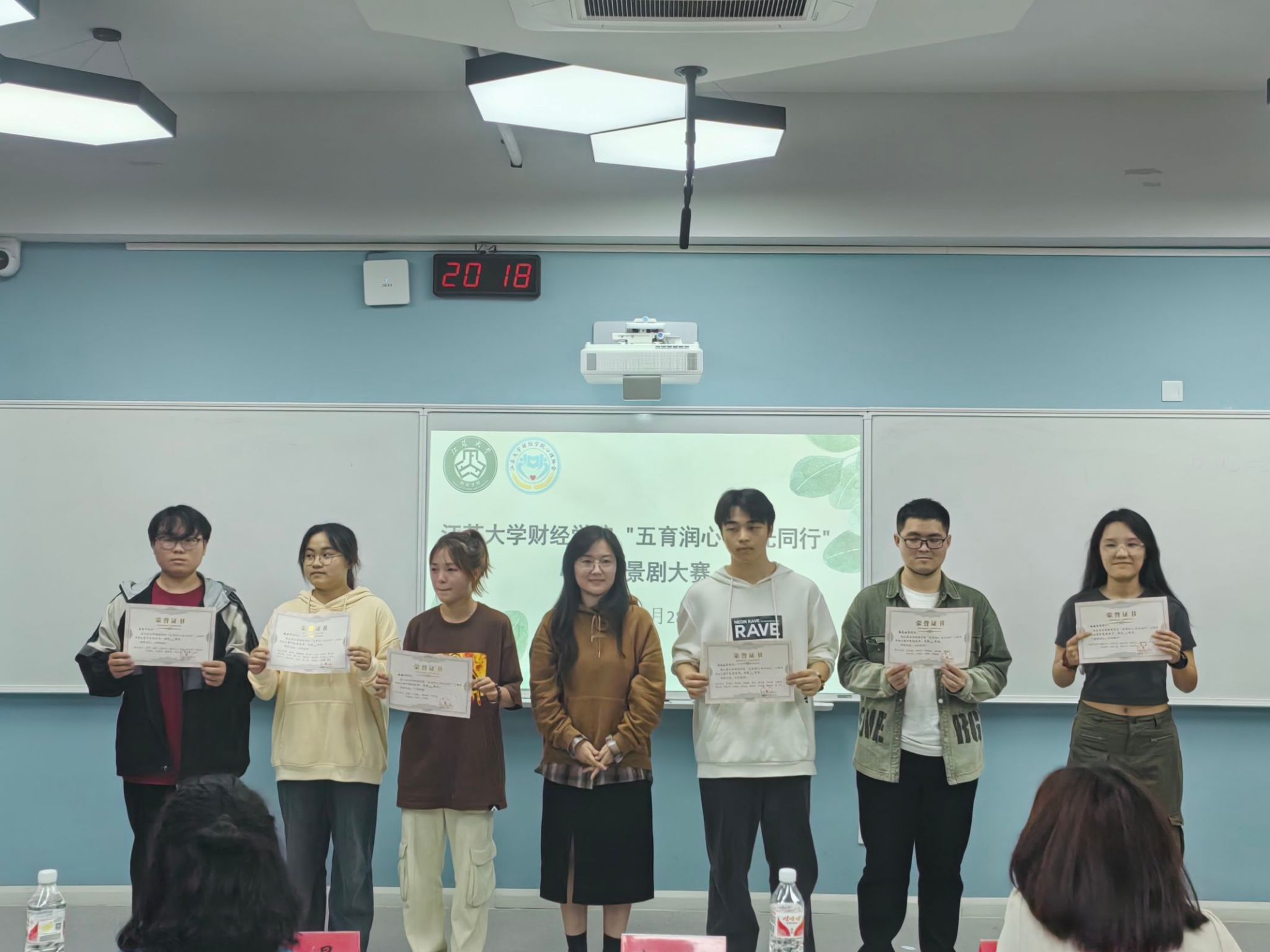 经过激烈的现场角逐,会计专业《面具之下》获一等奖,保险专业《与那良夜作别》、金融专业《破茧荧碟,南栀向暖》获二等奖,国贸专业《心无褶皱,行至春光》、财管专业《盲茫》、统计专业《新生》获三等奖。心理健康教育中心宋姚飞老师在赛后对演员表演、角色刻画、细节表现等多方面进行了点评和总结。宋老师提到,老员工不仅要有健康的身体,更要有健全的心理。要注重自我建设、自我培养,建立起自己顽强的心理韧性,以和谐的内心世界拓展精彩的外部世界。