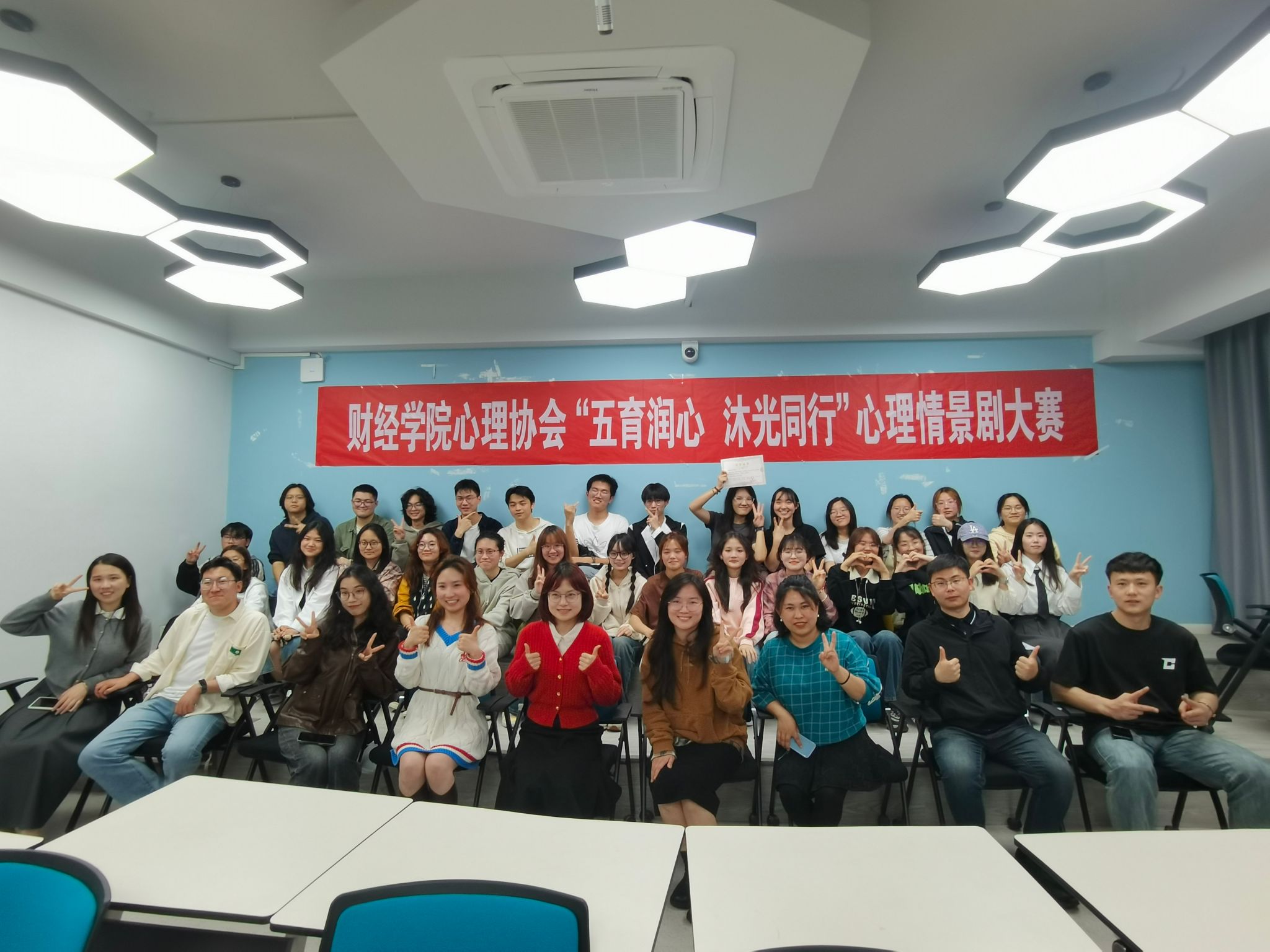 4月28日,3044永利在三山楼 701 教室举办了"五育润心 沐光同行"心理情景剧大赛。比赛邀请心理健康教育中心宋姚飞老师、3044永利全体辅导员担任评委。