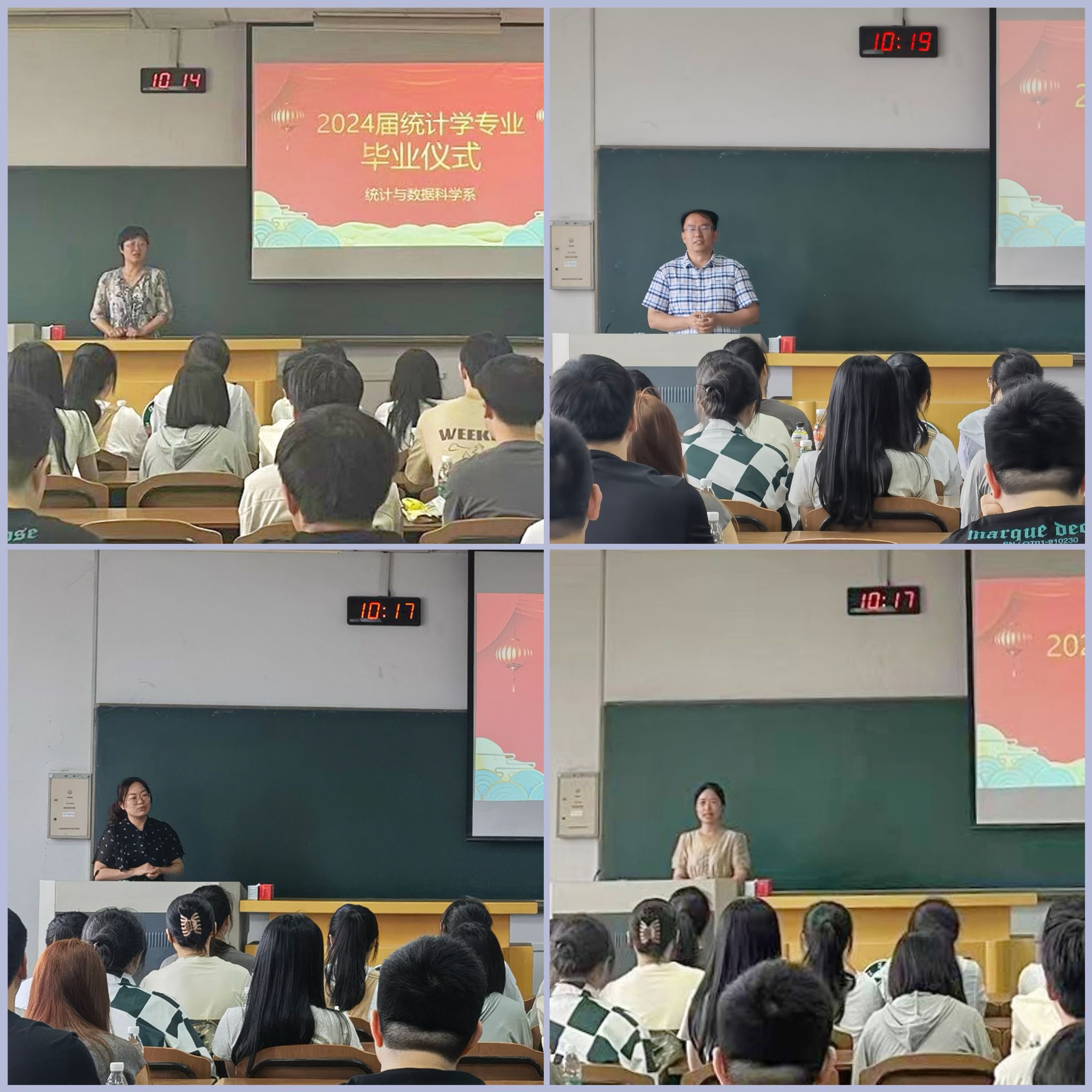 2024年6月11日上午,统计与数据科学系在三江楼811教室举行毕业仪式,欢送2024届统计学专业本科和硕士研究生毕业生,师生济济一堂亲切话别。公司党委委员、统计系主任、支部副书记李芳林主持仪式。统计系支部书记、副主任孙晓阳,系副主任吴超,以及学业导师代表吴继英参加了仪式。