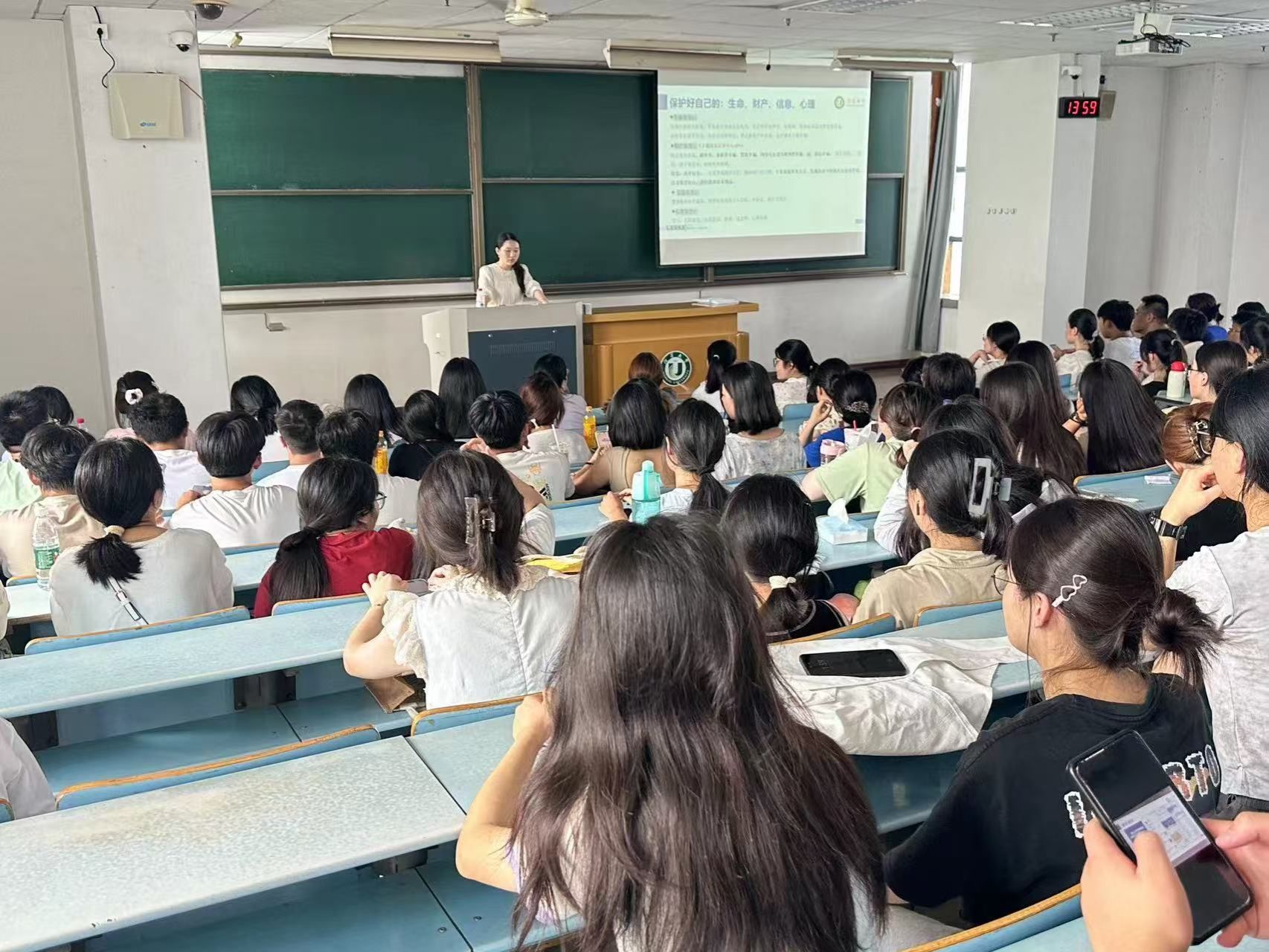 见面会上,陈老师首先进行了自我介绍,并依次向同学们介绍学校教学楼的位置分布、学校学院官网、学校相关部门电话、学校各食堂营业时间、校园出行以及宿舍注意事项,涉及衣、食、住、行等方方面面。接着,陈老师强调了《员工手册》的重要性,并提醒新生认真阅读,熟悉学校的各项规章制度,她从请假、考勤、家长进校、宿舍管理等这些日常事务出发,回答初来乍到的大一新生心中的疑惑。在安全教育方面,陈老师特别强调了防范诈骗的重要性,列举了多种常见的诈骗类型,并提醒新生提高警惕,避免上当受骗。最后,她寄语2024级新生“莫要虚度光阴,稳抓学业的同时享受老员工活,让青春更加丰富多彩”。