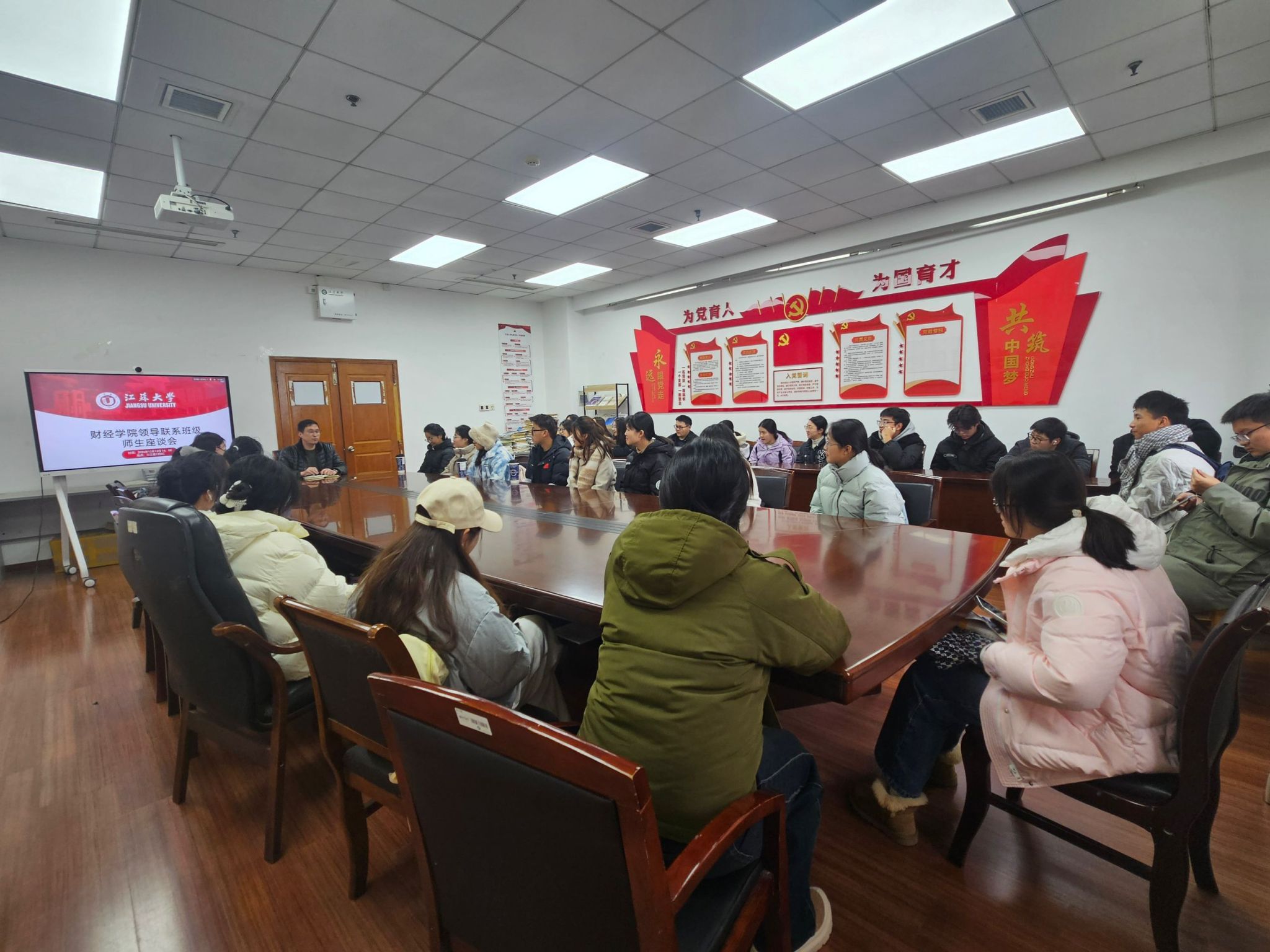 为深入员工内部,增进了解员工的日常情况和教学反馈,促进师生之间的沟通交流,落实领导干部深入基层联系师生工作,推动公司产品工作的不断进步。财经公司党委于12月12日在三江楼1304会议室举办了师生座谈会。财经公司党委副书记、副经理刘群东出席会议,辅导员陈鑫雨及金融2401班全体同学参与。