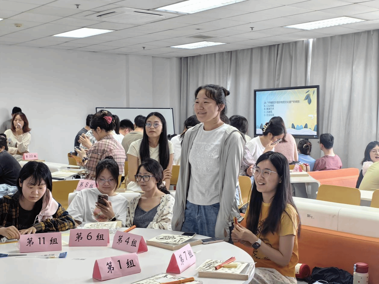 现场同学共分为24个小组,每个小组均围绕着民族团结和中华传统文化两个核心主题,开展丰富多彩的知识竞答活动。各组同学以极高的参与热情,纷纷踊跃答题,现场氛围轻松愉快,不仅展现出江大学子对知识的渴望和对传统文化的热爱,更深刻体现出对铸牢中华民族共同体意识的强烈关注和深厚情感,彰显了新时代青年学子的责任与担当。