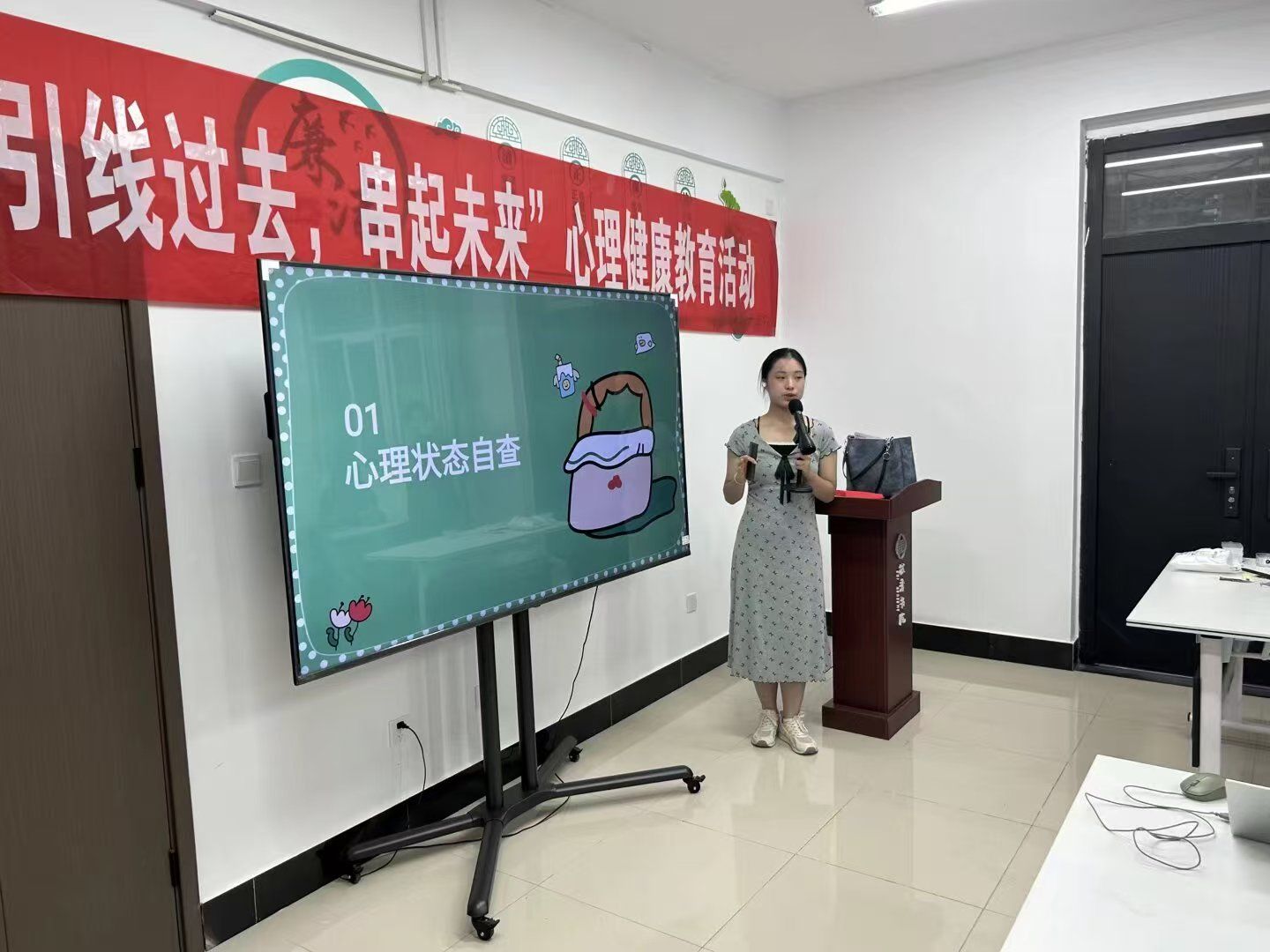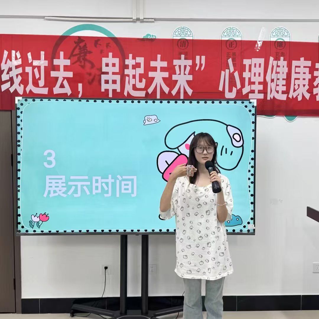 活动采用“认知-表达-分享”三阶段设计,涵盖专业心理测评、情绪串珠创作和故事分享会等多个环节。在专业心理测评阶段,同学们通过科学工具体验自我觉察,初步了解自身情绪状态。随后,主持人对“过去”与“未来”的象征意义进行阐释,为后续环节奠定理论基础。