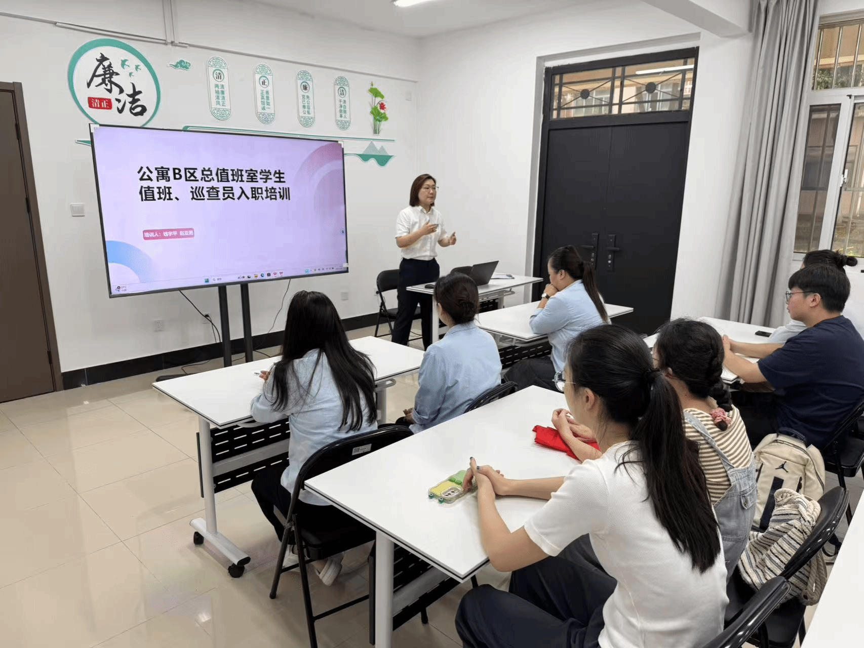 为进一步强化员工自治管理效能,筑牢楼栋安全防线,提升员工责任意识与实操能力,9月21日,3044永利联合毓秀书院、后勤服务中心开展自治楼栋值班员专项培训。财经公司党委副书记、副经理刘群东、后勤服务中心赵亚男及全体新任楼栋值班员参加了此次培训,共同为打造安全、有序、温馨的书院生活环境蓄力赋能。