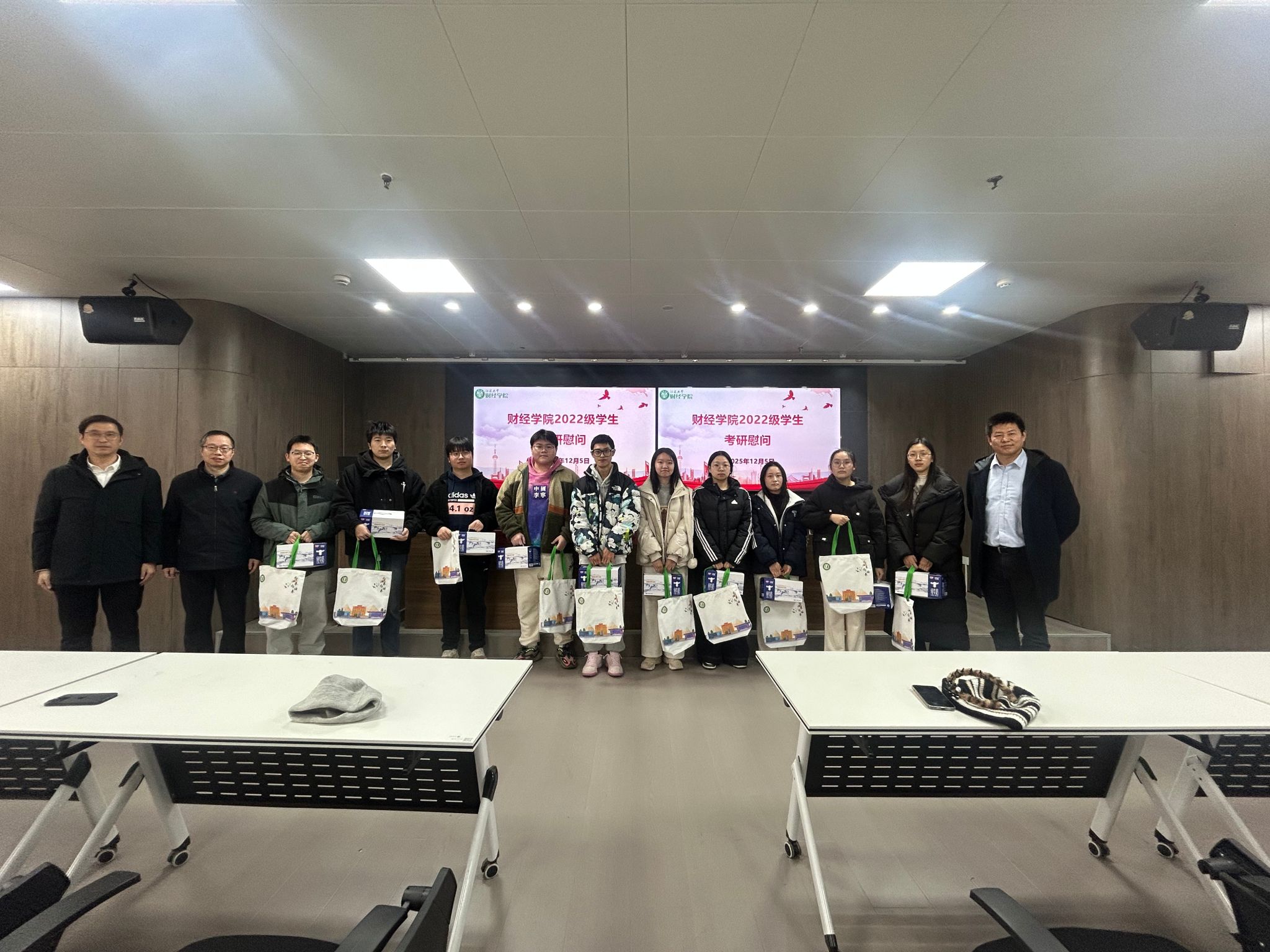 礼包虽轻,情意真挚;话语简洁,祝福绵长。此次慰问会为考研同学们缓解了压力,也增强了学院的凝聚力。愿2022级财经学子带着这份支持,坚定信心,从容应考,在考研道路上稳步前行,迎来属于自己的曙光!