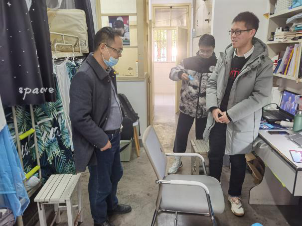 公司领导查看了宿舍消毒用品、体温计等防疫物资准备情况和宿舍卫生状况,叮嘱员工要保持室内整洁,做好防疫措施,确保身体健康。他们与员工亲切交谈,详细询问了员工到校后的学习、生活安排等,鼓励低年级同学树立奋斗目标、做好学业规划,指导考研同学做好研究生复试准备,要求就业的同学能够积极就业,早签合同。院领导还重点关注了一些学习困难、生活困难和心理困难的员工。