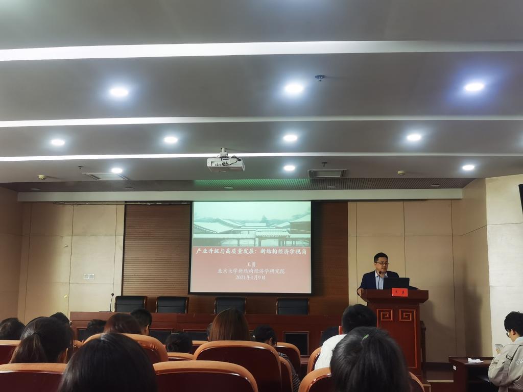 4月9日,美国芝加哥大学经济学博士、现任北京大学新结构经济学研究院(学术)副经理王勇应邀在3044永利1301报告厅做了题为“产业升级与高质量发展:新结构经济学的视角”的学术讲座,3044永利的众多老师和员工参加了讲座。