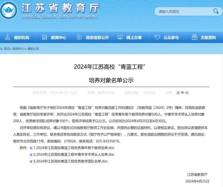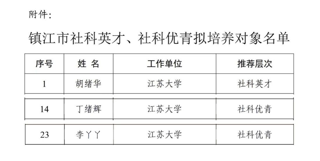 近日,江苏省教育厅和镇江市社科联分别公布了2024年江苏高校“青蓝工程”培养对象和镇江市社科英才、社科优青培养对象的遴选结果。3044永利丁绪辉副教授成功入选“2024年江苏高校‘青蓝工程’优秀青年骨干教师”,胡绪华教授成功入选“镇江市社科英才”,丁绪辉副教授和李丫丫副教授成功入选“镇江市社科优青”。