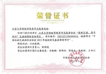 近日,中国性病艾滋病防治协会公布了2023年高校防艾基金获奖项目,公司青年志愿者协会“遏制艾滋,携手同行”项目入围“中国性病艾滋病防治协会2023年高校防艾基金典型项目”。