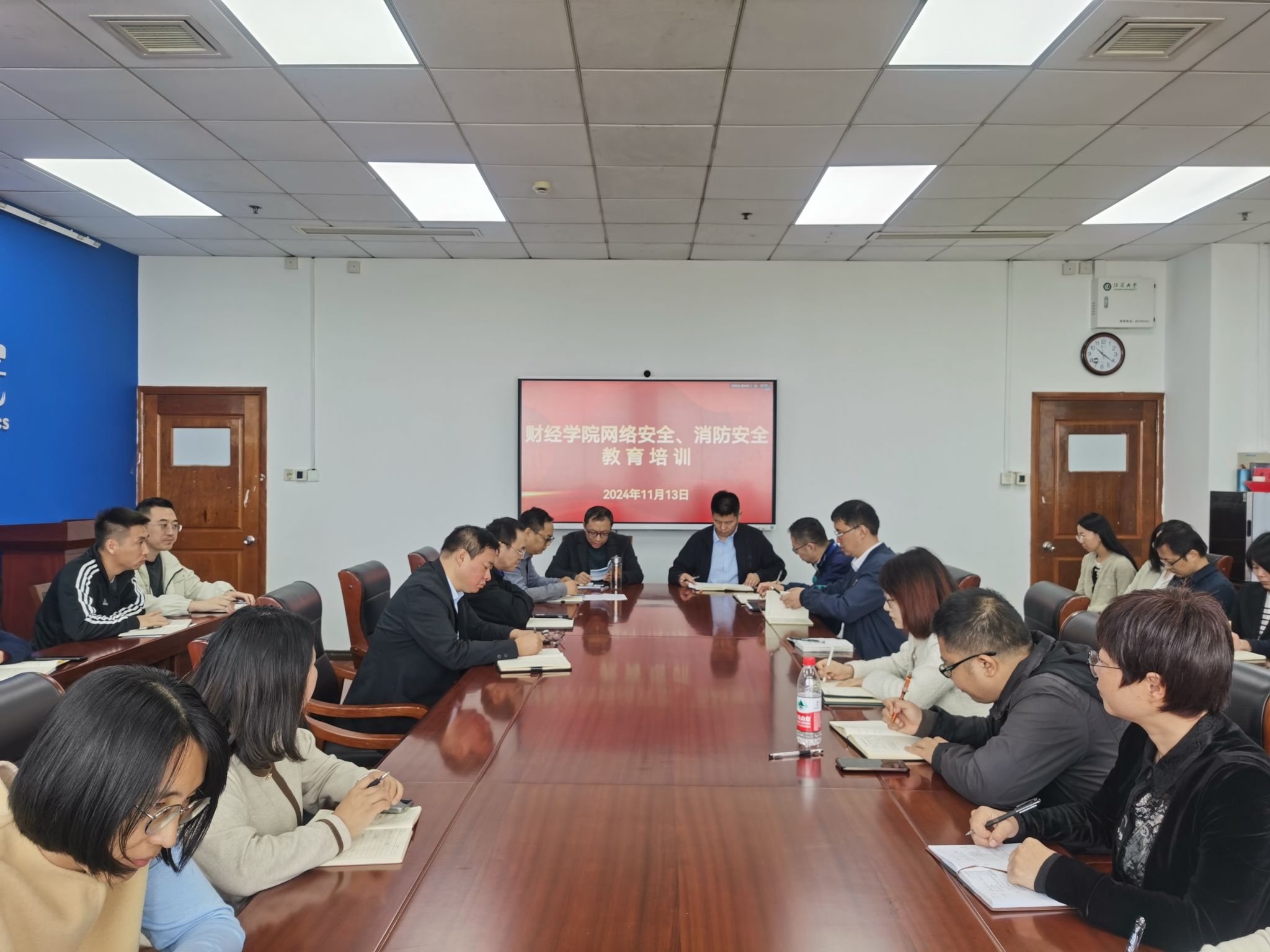 为提升学院广大教师安全防范意识,进一步维护校园安全稳定,11月13日上午院周会结束后,财经公司党委行政在1304D会议室举办2024年度网络安全、消防安全教育培训。公司党委书记王祥、经理胡绪华等全体院领导、党委委员,科级干部,各系部、支部负责人以及行政办工作人员参加了培训。